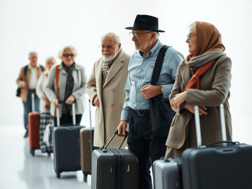 There she is, already standing in line, holding the memory of her old suitcase.